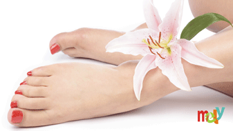 - das Baden der Füße im wohltuend warmen und mit Pflegesubstanzen angereicherten Paraffinwasser